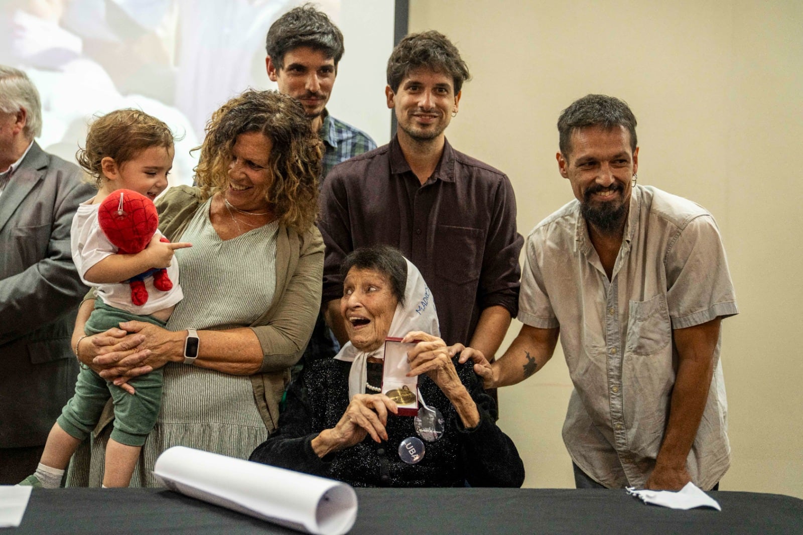 El del viernes fue su quinto honoris causa, pero éste era especial: porque fue en Buenos Aires, lo que permitió que casi toda la familia se congregara. Faltaban sus hijos varones: Jorge, que vive en España, y Alejandro, que sigue desaparecido.